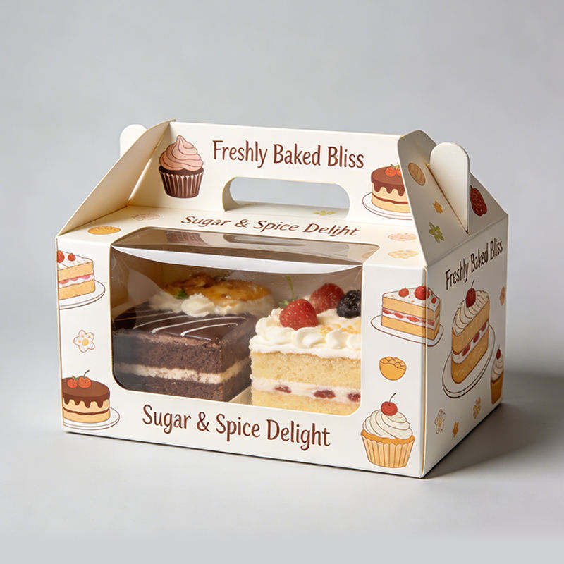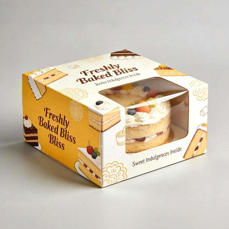 Custom Biodegradable Sponge Lined Sandwich Food Dessert Boxes with UV Coating Embossed Windowed Cheese Packaging for Take-Away