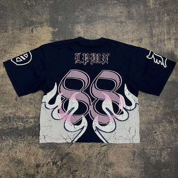 เสื้อยืดโอเวอร์ไซส์ทรงครอปสำหรับผู้ชาย ผ้าถักพิมพ์ลายดิจิตอล ผ้าฝ้ายแท้ 100% สีดำแบบกำหนดเอง ตกแต่งด้วยลายตัวอักษรและคริสตัล