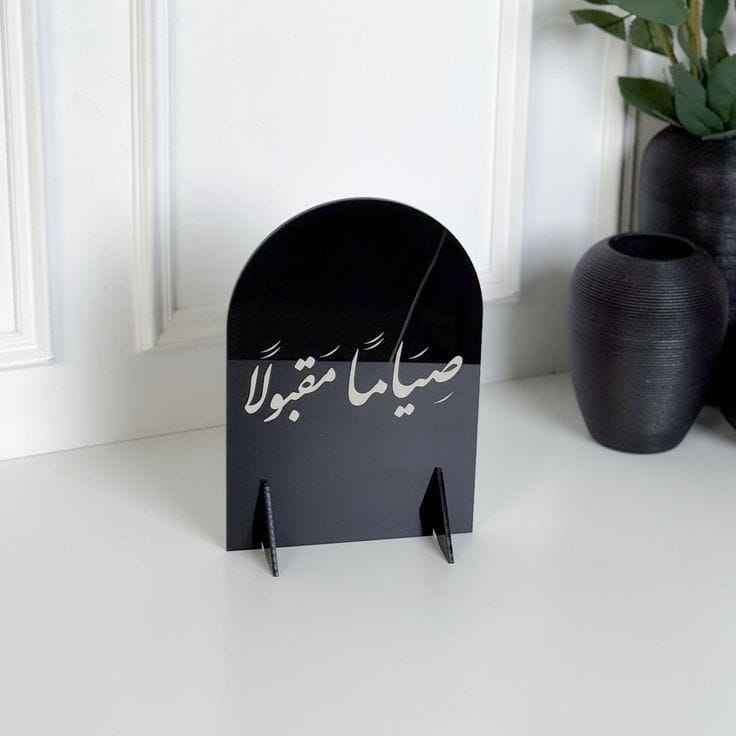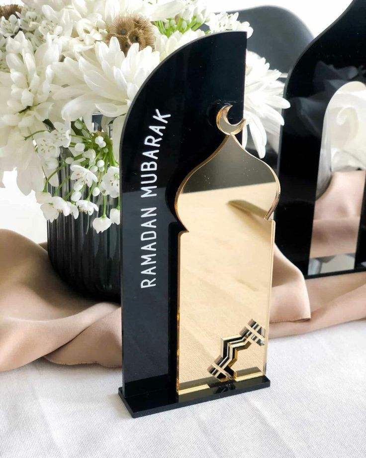 ป้ายอะคริลิคสีดำแบบกำหนดเองสำหรับโต๊ะรอมฎอน ป้ายอักษรวิจิตรภาษาอาหรับ ของตกแต่งโต๊ะสไตล์อิสลาม ของประดับอีดมูบาร็อค ของตกแต่งบ้านสำหรับชาวมุสลิม