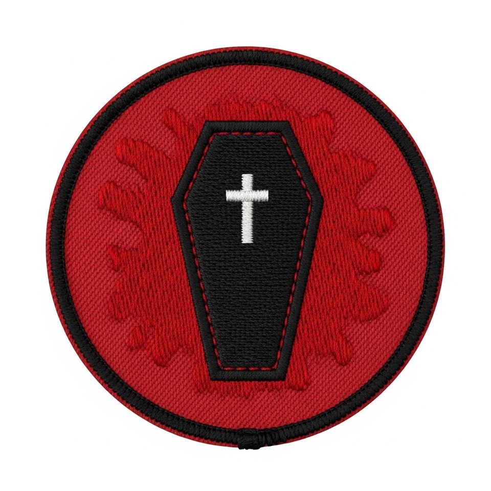 แผ่นปะติดรูปค้างคาวสีดำแบบกำหนดเอง ปักลายวงกลมพระจันทร์สีแดง ตราสัญลักษณ์แวมไพร์แบบกอธิค ปักด้วยเครื่องจักร เย็บติดได้ ใช้สำหรับตกแต่งในวันฮาโลวีน