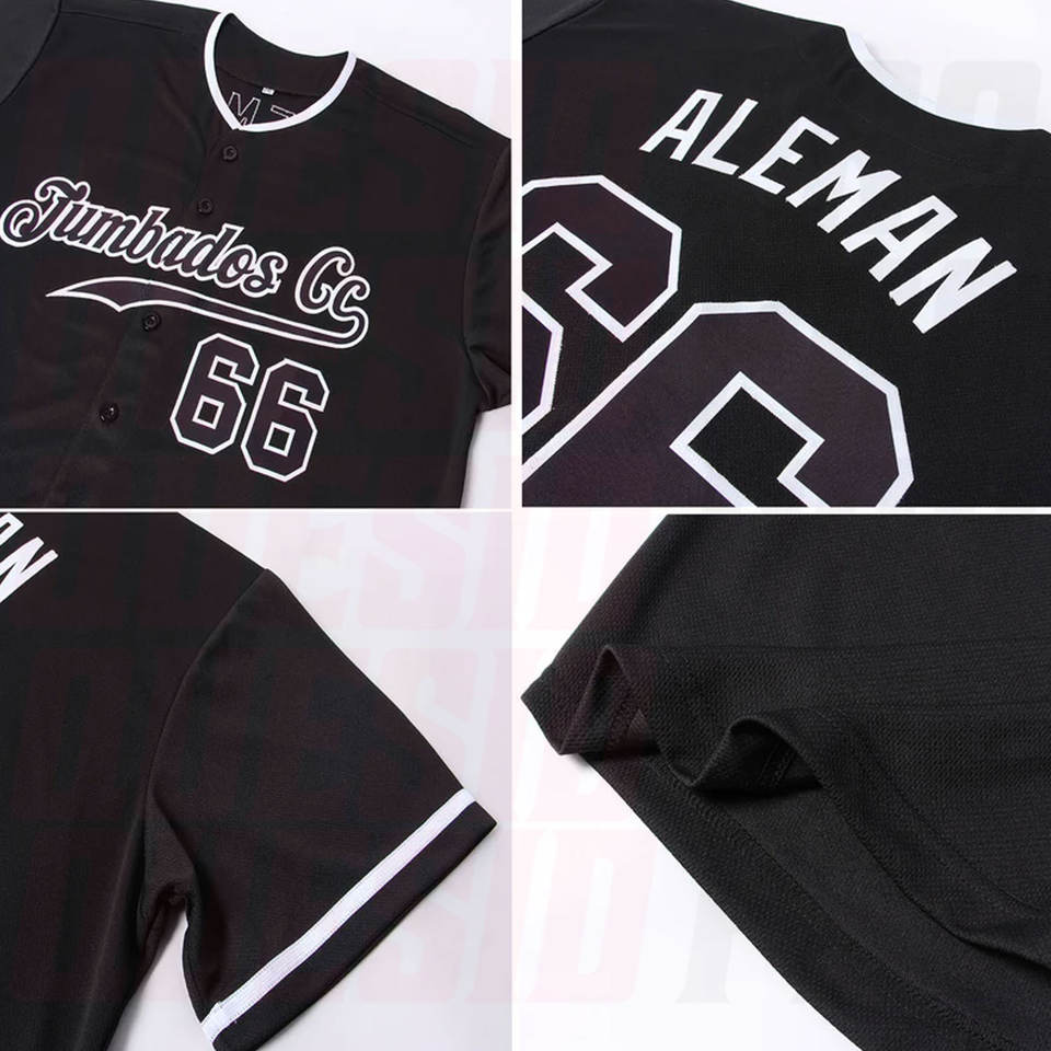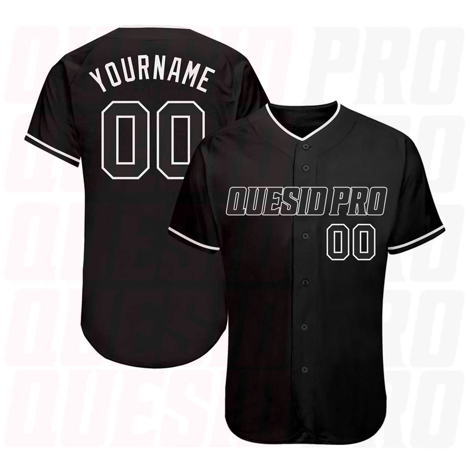เสื้อเบสบอลสีดำและสีดำ-ขาวแบบกำหนดเองได้ พร้อมบริการพิมพ์ลายแบบ Sublimation ออกแบบโลโก้และสีได้ตามต้องการ
