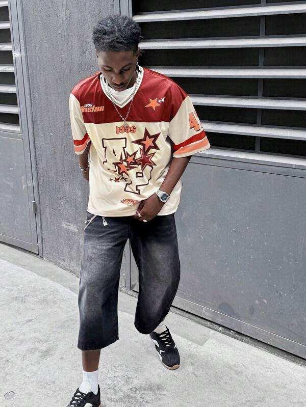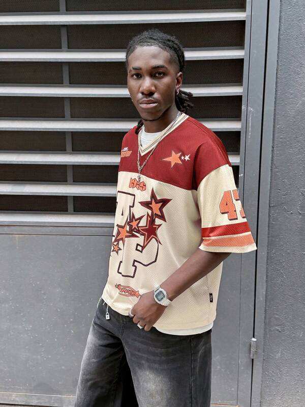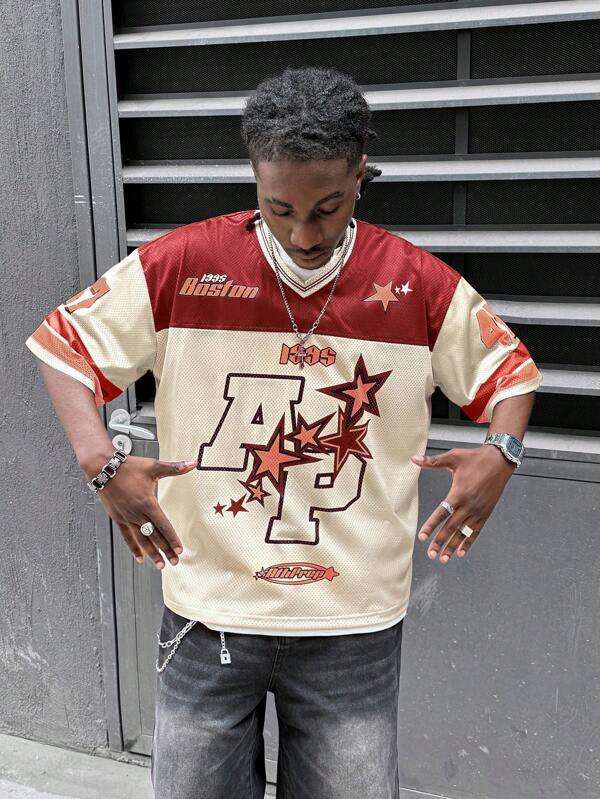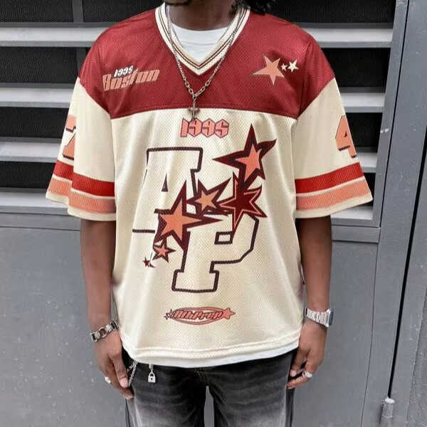 เสื้อฟุตบอลตาข่ายสีดำน้ำเงินพิมพ์ลายผีเสื้อทรงโอเวอร์ไซส์ สตรีทแวร์ เสื้อยืดกีฬาแบบยูนิเซ็กซ์ รับผลิตตามสั่ง ขายส่ง