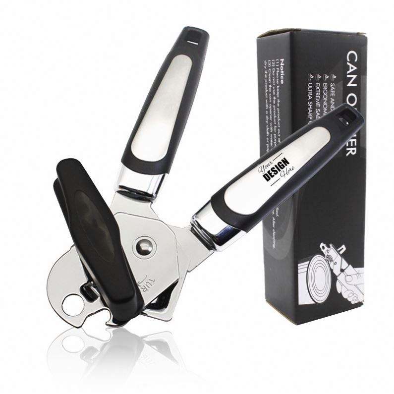 ที่เปิดกระป๋องสีดำแบบกำหนดเองพร้อมด้ามจับนุ่มมือ ใช้งานง่าย ทนทาน เหมาะเป็นของขวัญส่งเสริมการขาย