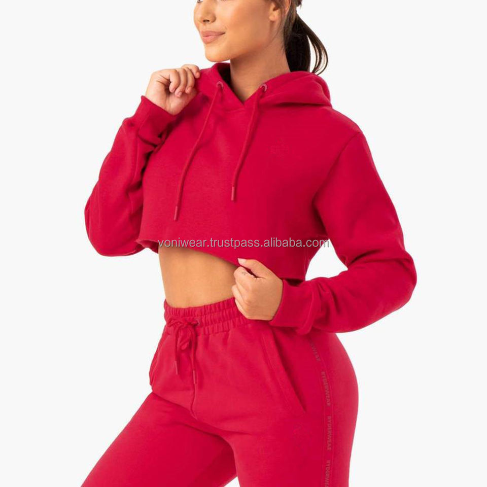 สเวตเชิ้ตมีฮู้ดเซ็กซี่ของผู้หญิงสีดำผ้าโพลีเอสเตอร์/ ผ้าฝ้ายถักสีผสมโพลีเอสเตอร์ให้ความอบอุ่นพื้นสำหรับฤดูหนาว