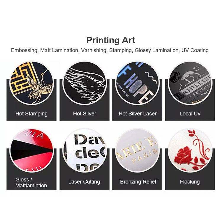 ลายนูน, แมตต์เคลือบ, เคลือบเงา, การตอก, เคลือบเงา, เคลือบยูวี