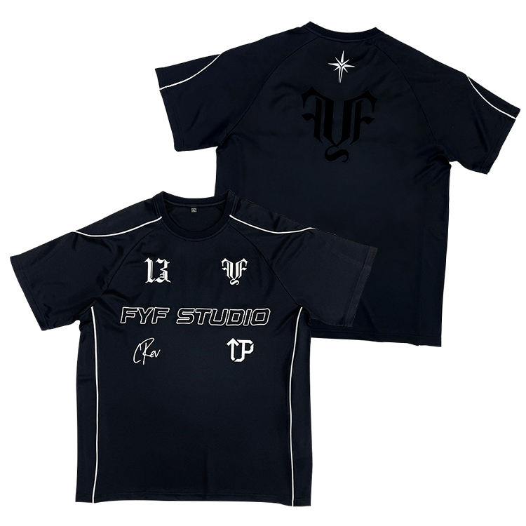 เสื้อฟุตบอลสีดำที่กำหนดเองเสื้อฟุตบอลปักโลโก้แฟชั่นการเย็บปะติดปะต่อกันแบบย้อนยุค
