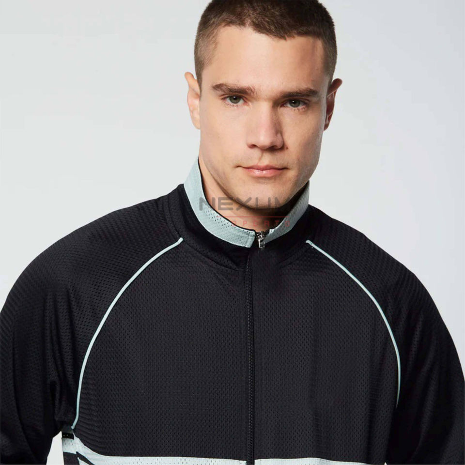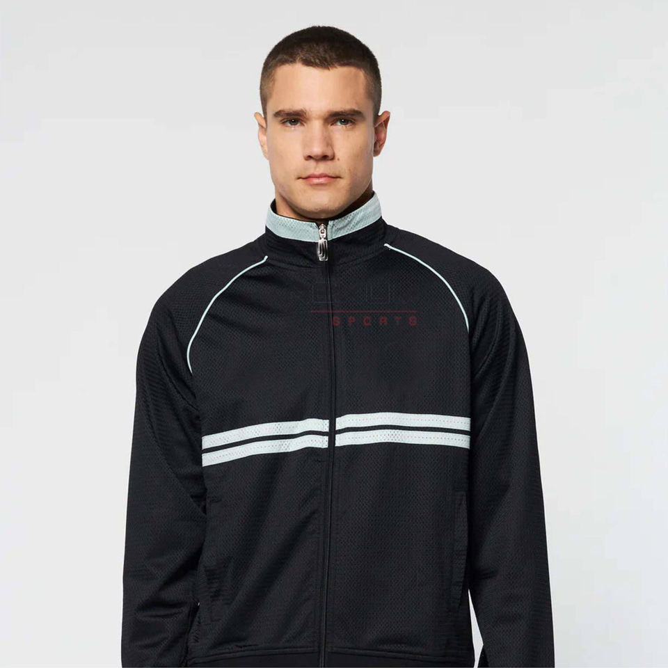 แจ็กเก็ตแนวซิปสำหรับผู้ชายสีดำแบบกำหนดเองมีแถบสีขาวน้ำหนักเบาชุดกีฬาฝึกซ้อมแฟชั่นล่าสุด