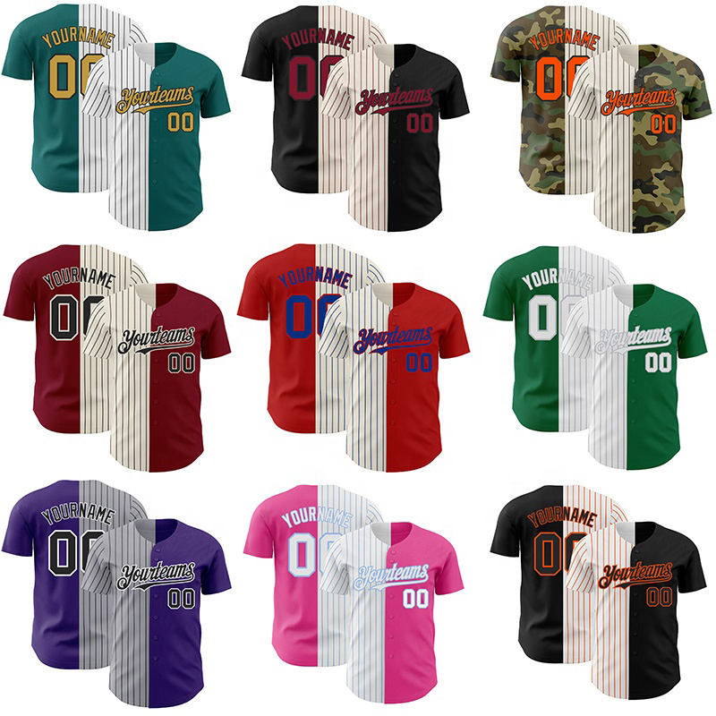 เสื้อเบสบอลลายทางไล่เฉดสีดำแบบกำหนดเองสำหรับผู้ชาย แบบติดกระดุม ชุดทีม ป้องกันแบคทีเรีย สายรัดรูปตัว T ระบายอากาศได้ดี ผลิตจากโพลีเอสเตอร์
