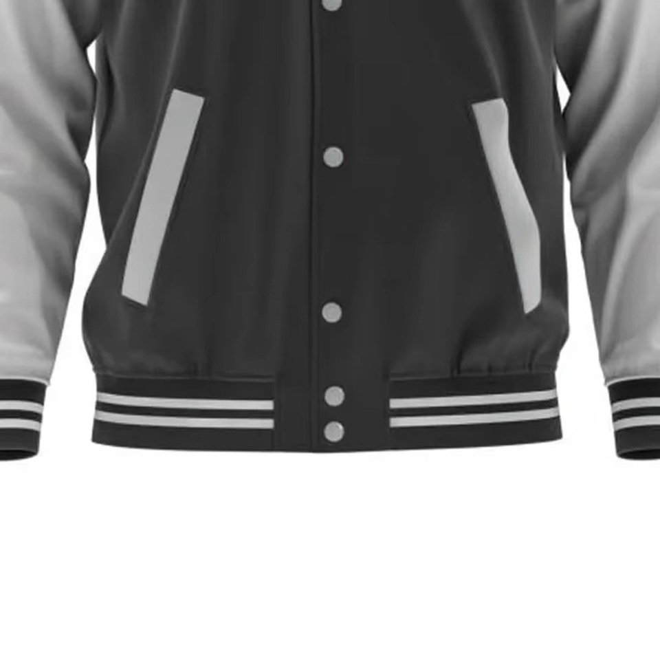 แจ็คเก็ตวาร์ซิตี้สีดำเทาแบบกำหนดเองสำหรับผู้ชาย แจ็คเก็ตเบสบอลทรงบอมเบอร์ แฟชั่นชุดนักศึกษา เสื้อผ้าสตรีทแวร์ เสื้อคลุมกันหนาว รับผลิตแบบ OEM ODM ขายส่ง