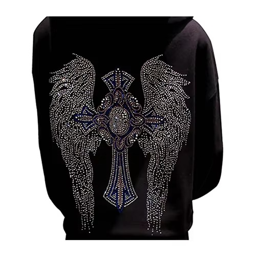 เสื้อฮู้ดกะโหลกสไปเดอร์สำหรับผู้ชายมีสายแบบหนาลายหัวกะโหลกประดับเพชรเทียมโอเวอร์ไซส์สำหรับผู้ชายโลโก้ที่มีคุณภาพสูงสีดำแบบกำหนดเอง