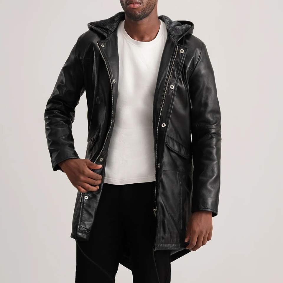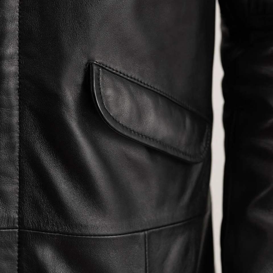 เสื้อแจ็คเก็ตหนังสีดำแบบกำหนดเองสำหรับผู้ชาย คอตั้ง สไตล์ลำลองสำหรับฤดูหนาว ปิดด้วยโลโก้ด้านหน้า กันลม ระบายอากาศได้ดี คุณภาพสูง