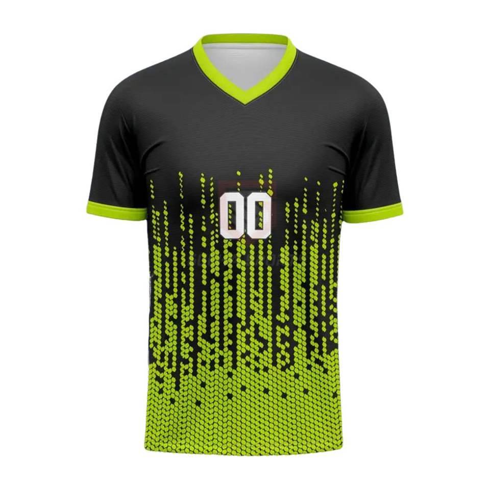เสื้อฟุตบอลมะนาวสีดำแบบกำหนดเองผ้าโพลีเอสเตอร์แห้งเร็วเสื้อทีมกีฬาแบบไล่ระดับ