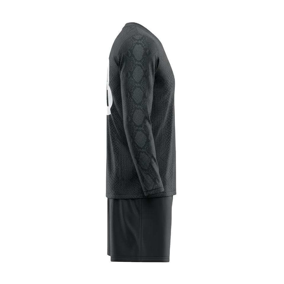 Custom Black Long Sleeve Soccer Uniform Set 100% Polyester Sublimation Football Jersey And Shorts Men Training Teamwear Kits