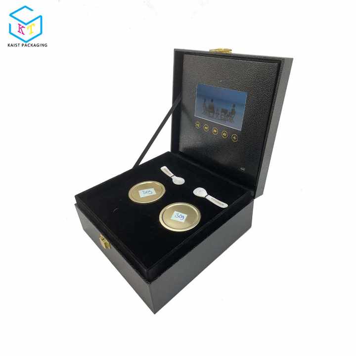 Packaging Details:กล่องวิดีโอแสดงผลของขวัญคาเวียร์หรูหราสีดำแบบกำหนดเองพร้อมหน้าจอ LCD