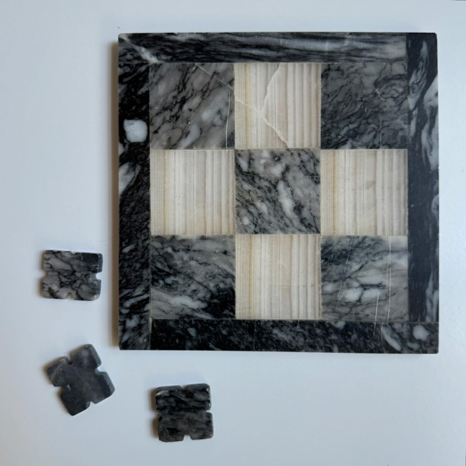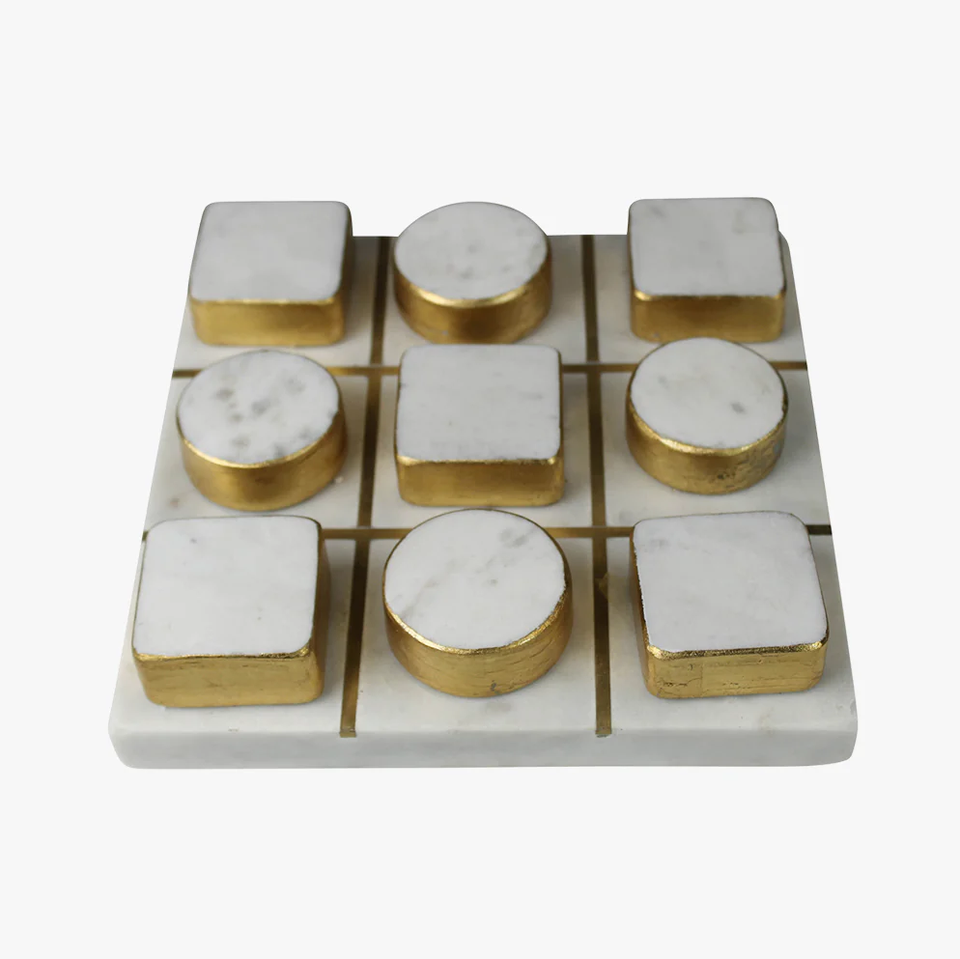 เกมกระดาน Tac ปลายเท้าหินอ่อนสีดำแบบกำหนดเองพร้อมฝังทองเหลืองเกมกระดาน Tac ปลายเท้าทำด้วยมือสำหรับดูเป็นมืออาชีพ