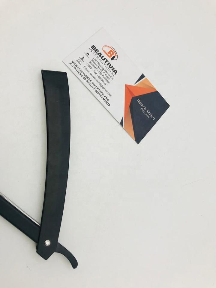 มีดโกนหนวดสำหรับโกนหนวดที่โกนหนวดช่างตัดผมแบบมืออาชีพสีดำด้านออกแบบได้เองฉลากส่วนตัวตามต้องการ