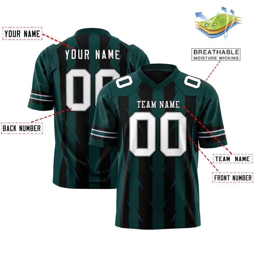 เสื้อเจอร์ซีย์ฟุตบอลลายกราฟฟิตีสีดำเขียวมิดไนท์แบบกำหนดเองพร้อมลายเส้น Razr สำหรับธงชาติ