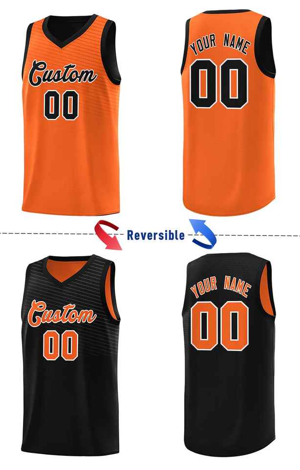 เสื้อบาสเก็ตบอลแบบสปอร์ตสองด้านลายเฉือนที่อกสีดำส้มแบบกำหนดเอง