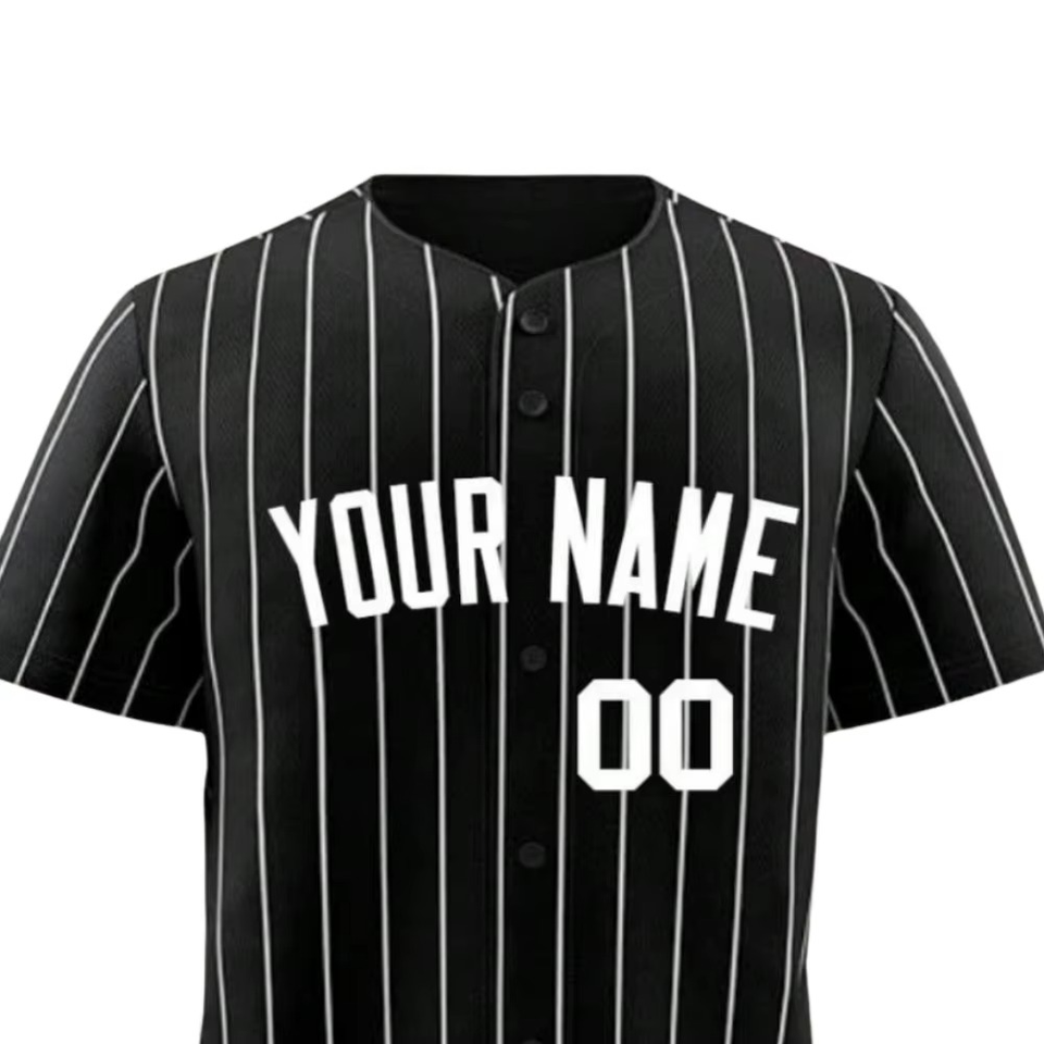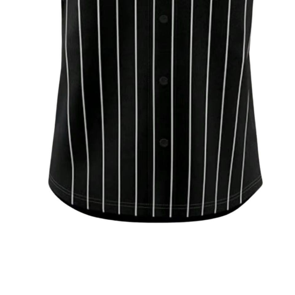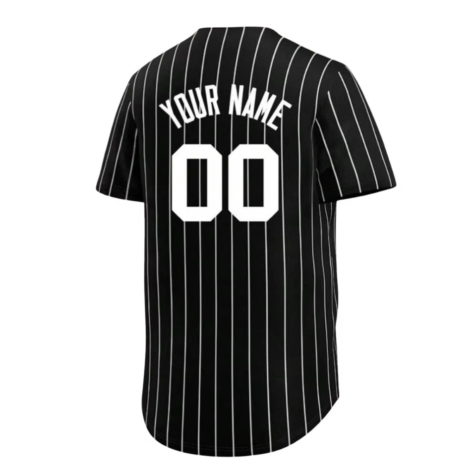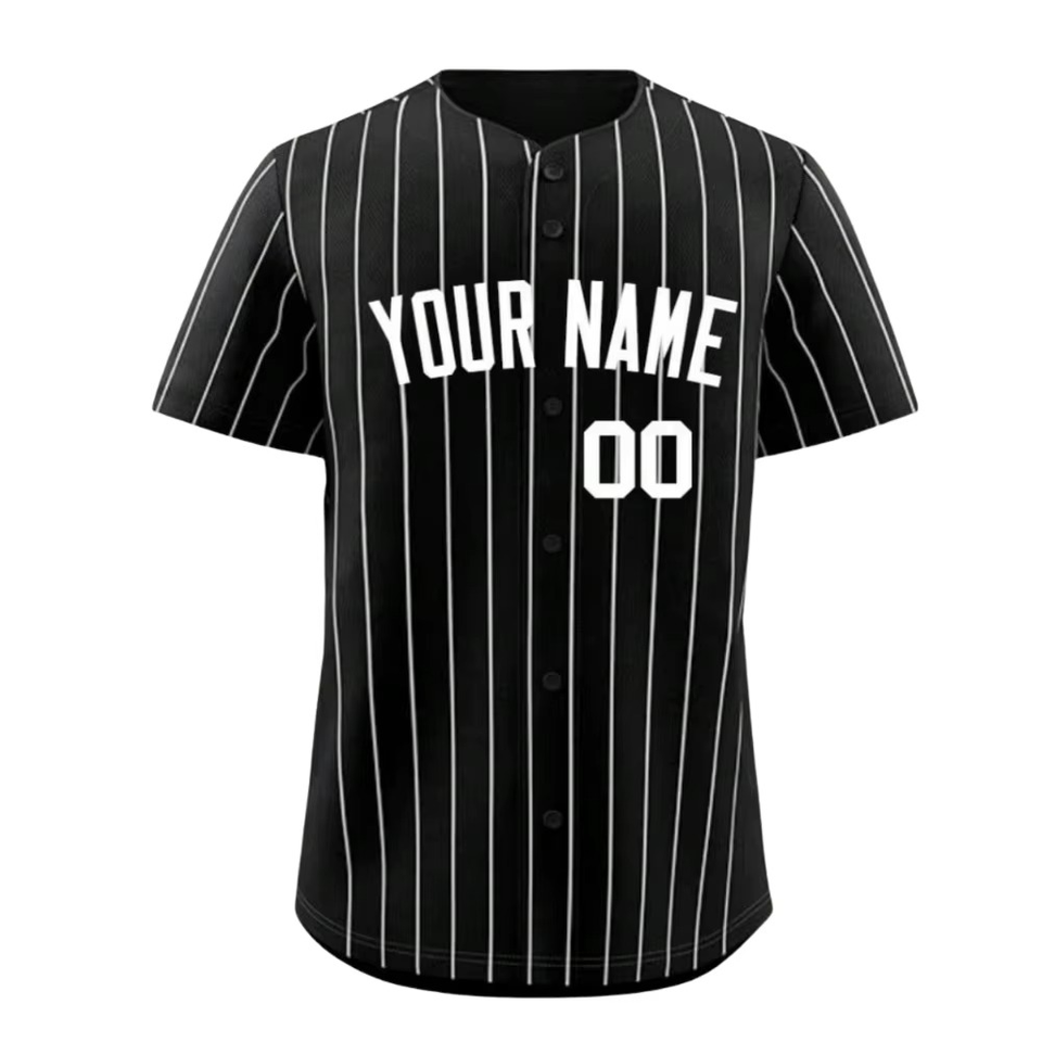 เสื้อเบสบอลลายเส้นสีดำแบบกำหนดเอง เสื้อทีมติดกระดุมเต็มตัว ปักชื่อได้ ระบายอากาศ แห้งเร็ว ผลิตจากโพลีเอสเตอร์