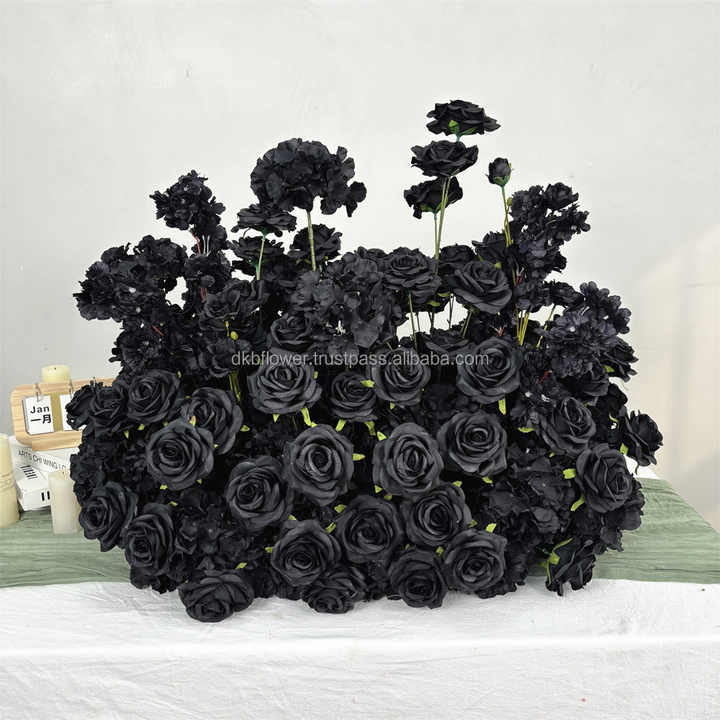 ดอกกุหลาบสีดำประดิษฐ์แบบเหมือนจริง ทำด้วยมือจากผ้าไหมสีดำ เป็นมิตรกับสิ่งแวดล้อม เหมาะสำหรับตกแต่งทางเดินงานแต่งงาน งานรับปริญญา และเทศกาลอีสเตอร์