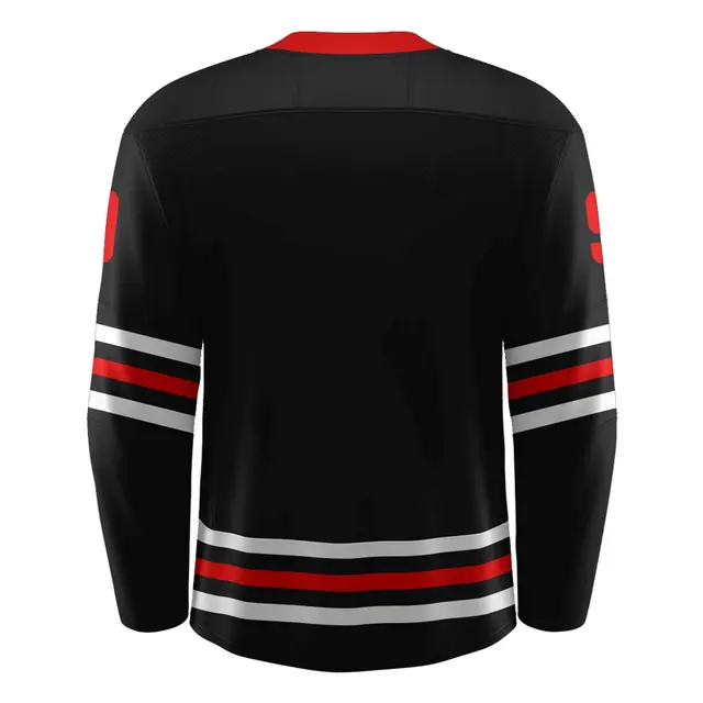 เสื้อฮอกกี้น้ำแข็งสีดำแดงแบบกำหนดเอง ชุดทีม แขนยาว เสื้อกีฬา ดีไซน์เปล่า