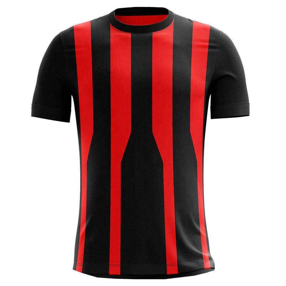 เสื้อฟุตบอลทีมลายทางสีดำแดงแบบกำหนดเอง ชุดกีฬาแขนสั้น