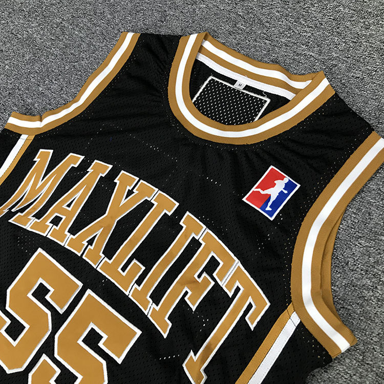 เสื้อบาสเก็ตบอลย้อนยุคสีดำเสื้อบาสเก็ตบอลปักโลโก้ดีไซน์คลาสสิก