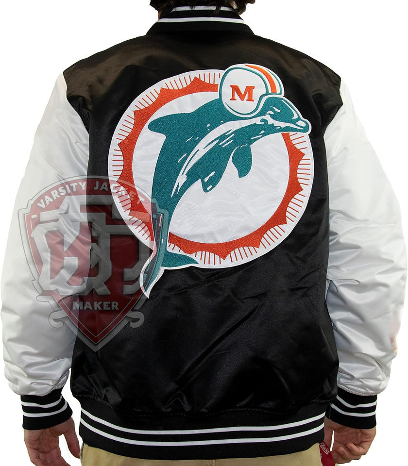 Custom Black Satin Varsity Jacket Men White Sleeve Bomber Jacket Wholesale Team Logo Embroidery Baseball Sportswear Coat