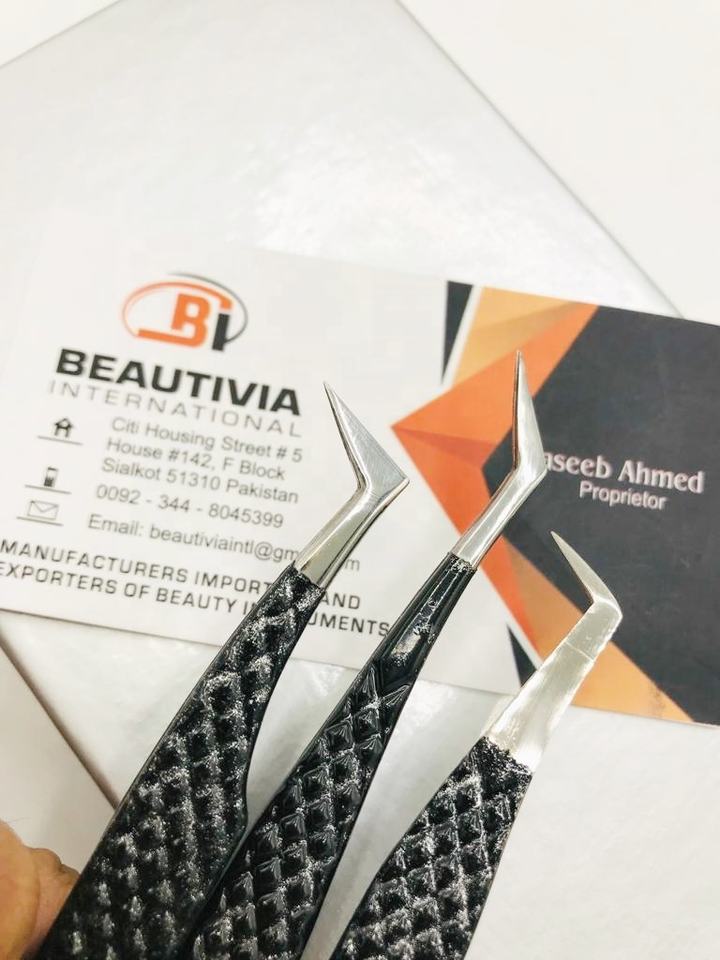 แหนบขนตาปลอมสีเงินแวววาวสีดำสั่งติดฉลากส่วนตัวแหนบแบบมืออาชีพ