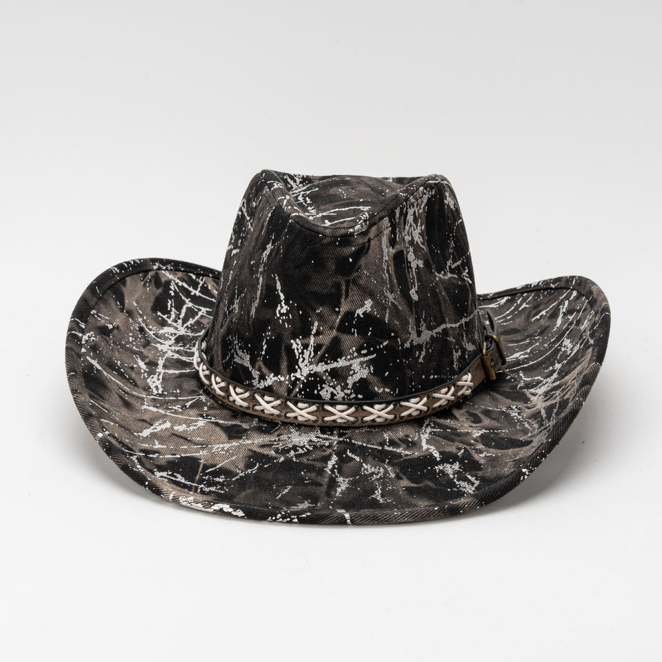 Product name:Black Silver Tie Dye Wide Brim Denim Hat