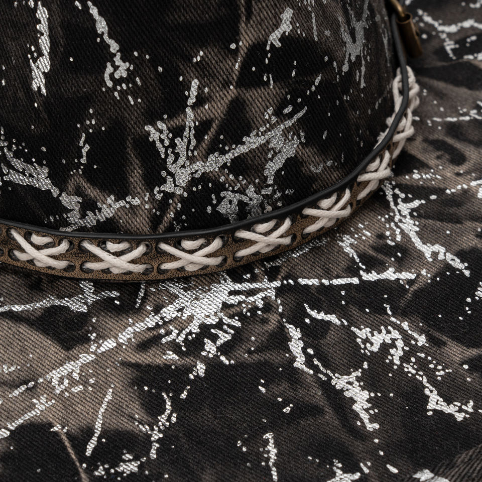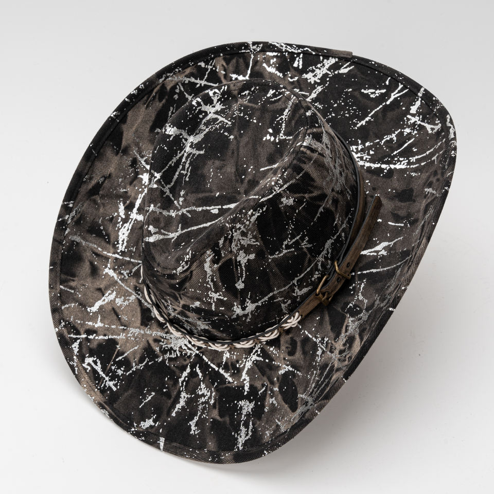 Black Silver Tie Dye Wide Brim Denim Hat