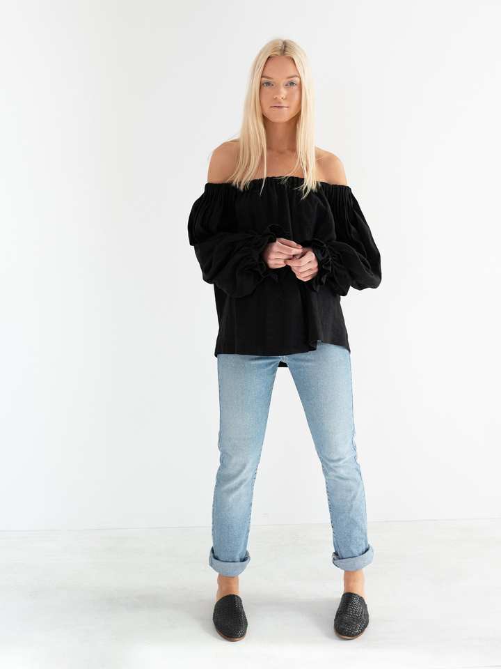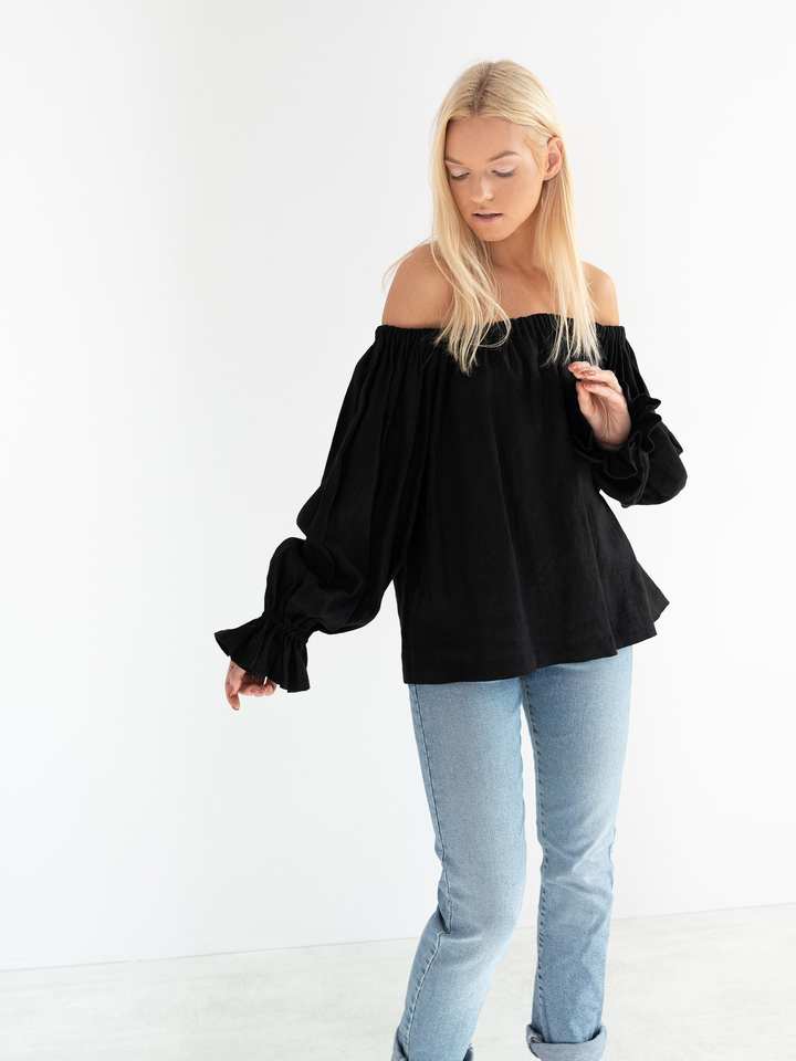 ชื่อผลิตภัณฑ์:เสื้อเปิดไหล่แบบตะวันตกสีดำสีพื้น