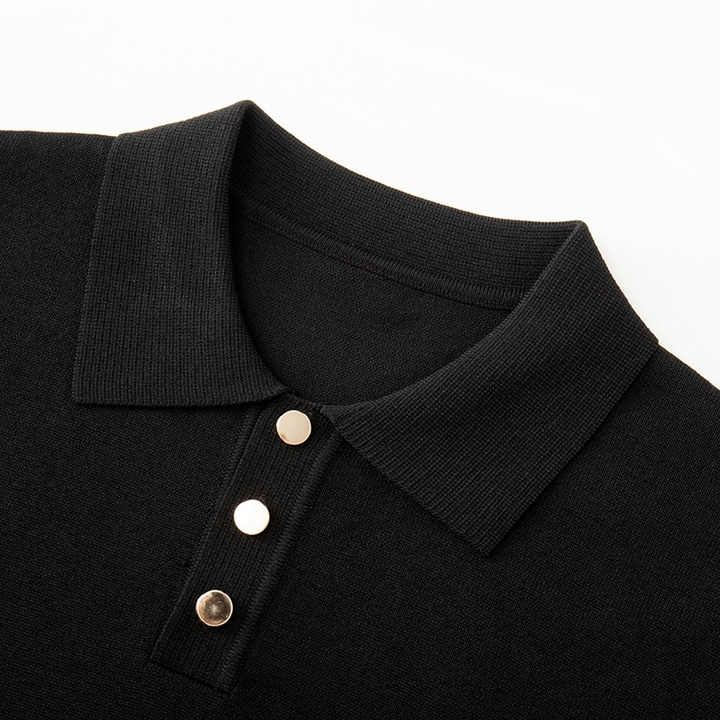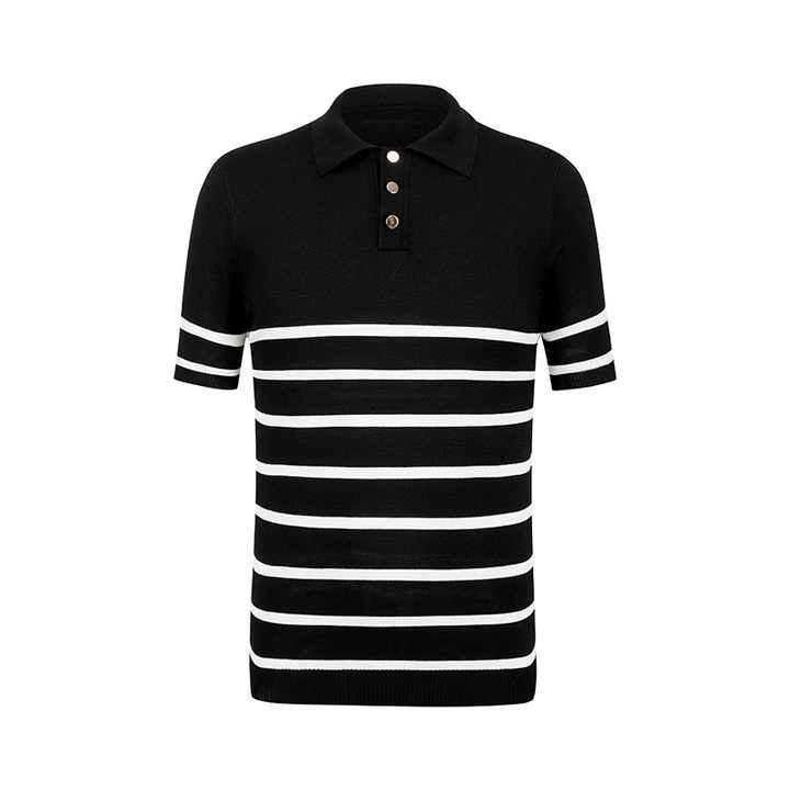 Custom Black Striped Men's Short Sleeve Button Knit Sweater Breathable 100% Cotton for Polo Collar for Spring/Summer-Knitwear
