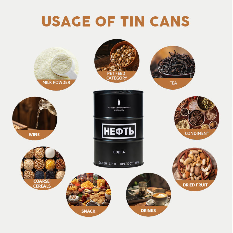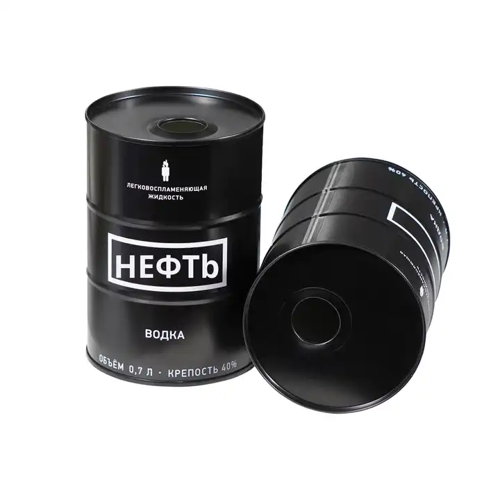 กระป๋องดีบุกสีดำแบบกำหนดเอง 700 มล. เกรดอาหาร ผลิตจากโรงงาน พร้อมจุกกดขนาด 24 มม. สำหรับบรรจุวอดก้า NEFT และไวน์