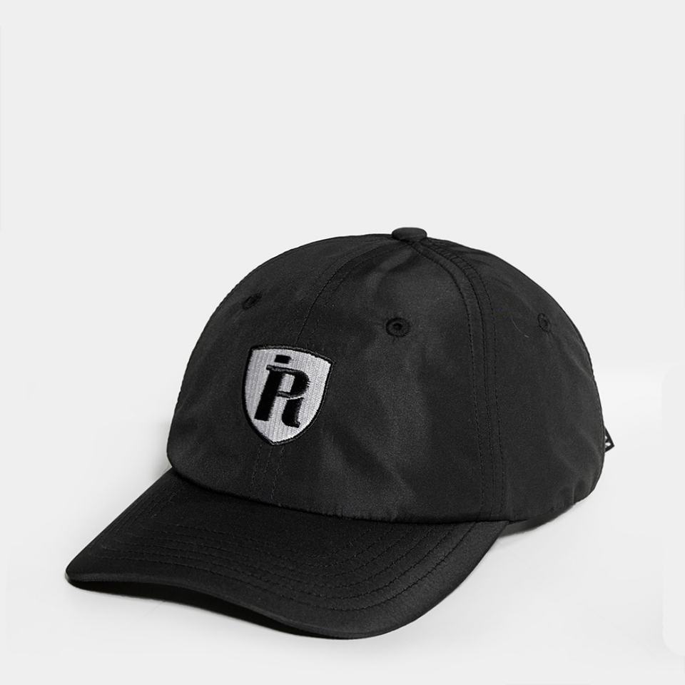 หมวกแก๊ปปักโลโก้แบบแบนไม่มีโครงสีดำแบบกำหนดเอง 6 แผง ผ้าไนลอน หมวก Snapback สำหรับวิ่ง