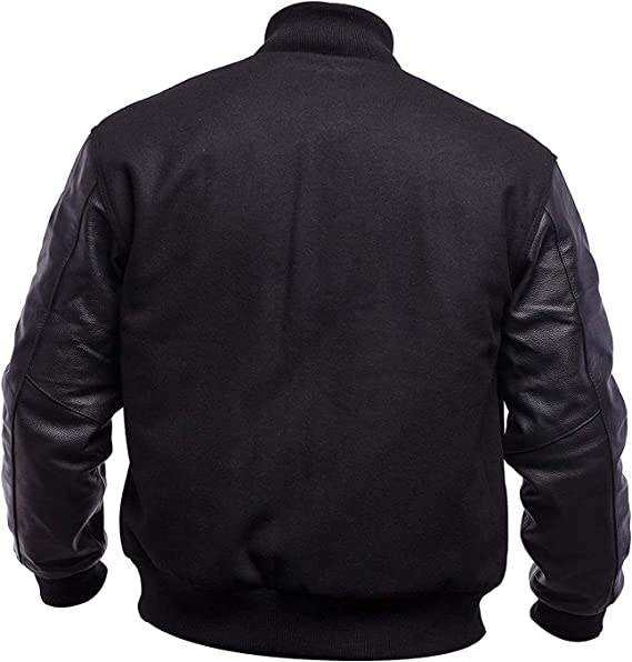 แจ็คเก็ตเบสบอลหนังแท้สีดำแบบกำหนดเองสำหรับผู้ชาย แจ็คเก็ตนักเรียนมัธยมปลาย ปักลายปักแบบเรียบง่าย ดีไซน์หนังแกะ สำหรับฤดูหนาว