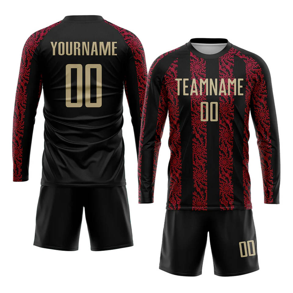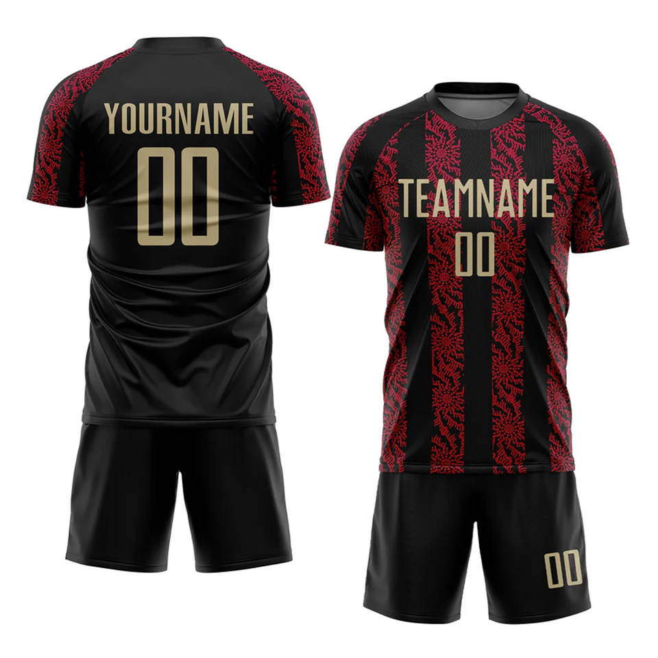 ชุดฟุตบอลแบบซับลิเมชั่นสีดำ เวกัสโกลด์ แดง แบบกำหนดเอง คุณภาพระดับมืออาชีพ ชุดฟุตบอลส่วนบุคคล ระบายอากาศได้ดี ชุดทีม