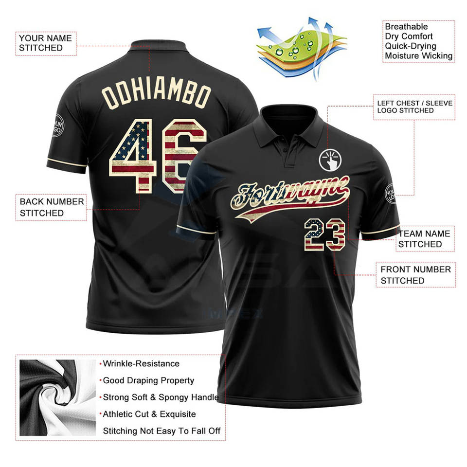 เสื้อโปโลกอล์ฟสีดำวินเทจ-ครีมแบบกำหนดเอง ระบายอากาศได้ดี ซับเหงื่อ เหมาะสำหรับการฝึกซ้อมกอล์ฟ