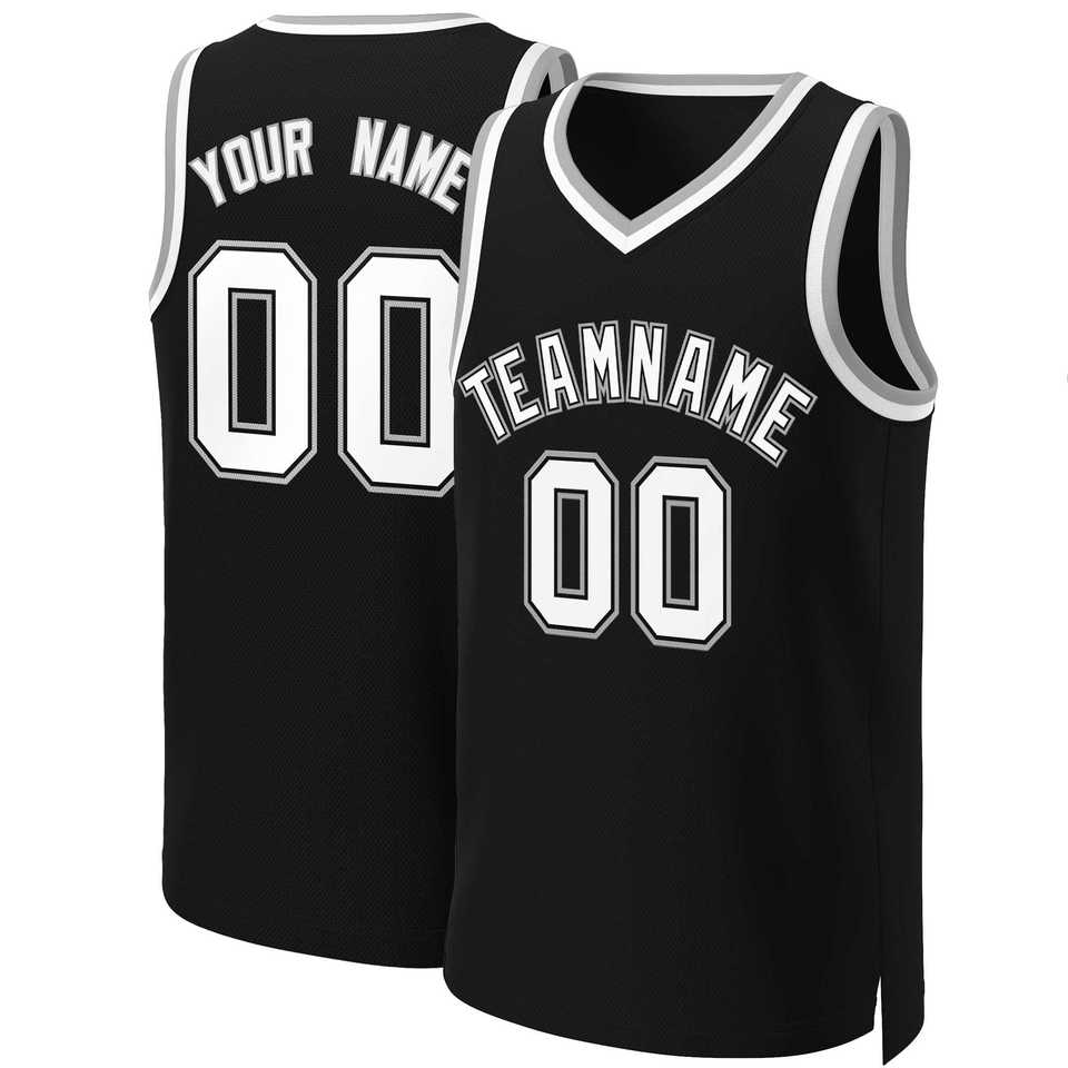 เสื้อบาสเก็ตบอลคลาสสิคสีดำขาว-ดำแบบกำหนดเอง