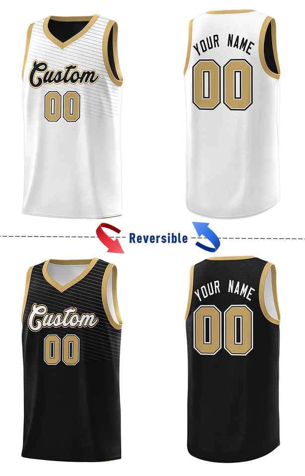 เสื้อบาสเก็ตบอลแบบสปอร์ตสองด้านลายเฉือนที่อกสีดำขาวแบบกำหนดเอง