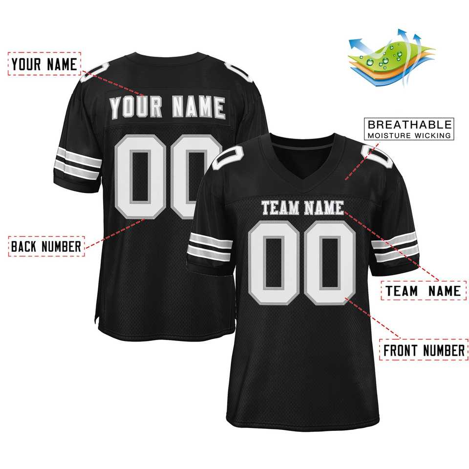เสื้อฟุตบอลแบบคลาสสิกสีดำขาวเทาแบบตาข่ายแท้