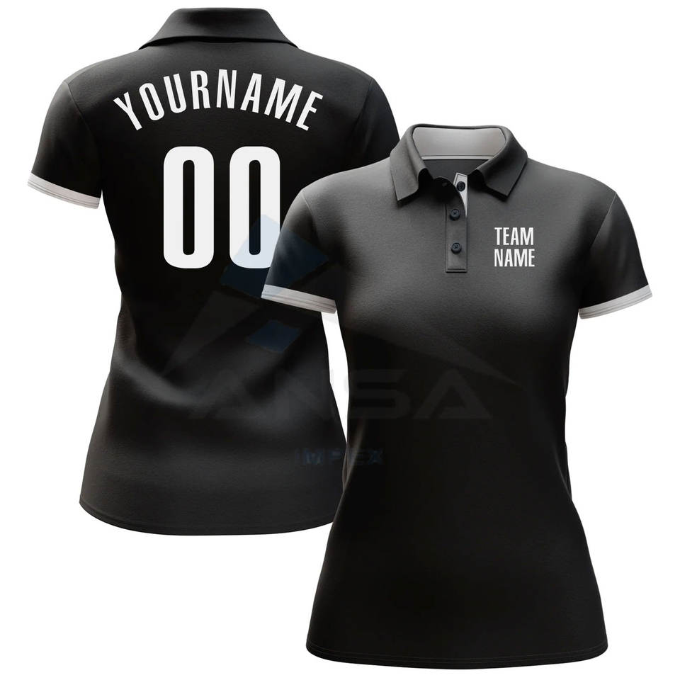 เสื้อโปโลกอล์ฟสีดำขาวแบบกำหนดเอง ระบายอากาศได้ดี ซับเหงื่อ เหมาะสำหรับการฝึกซ้อมกอล์ฟและสวมใส่ลำลอง