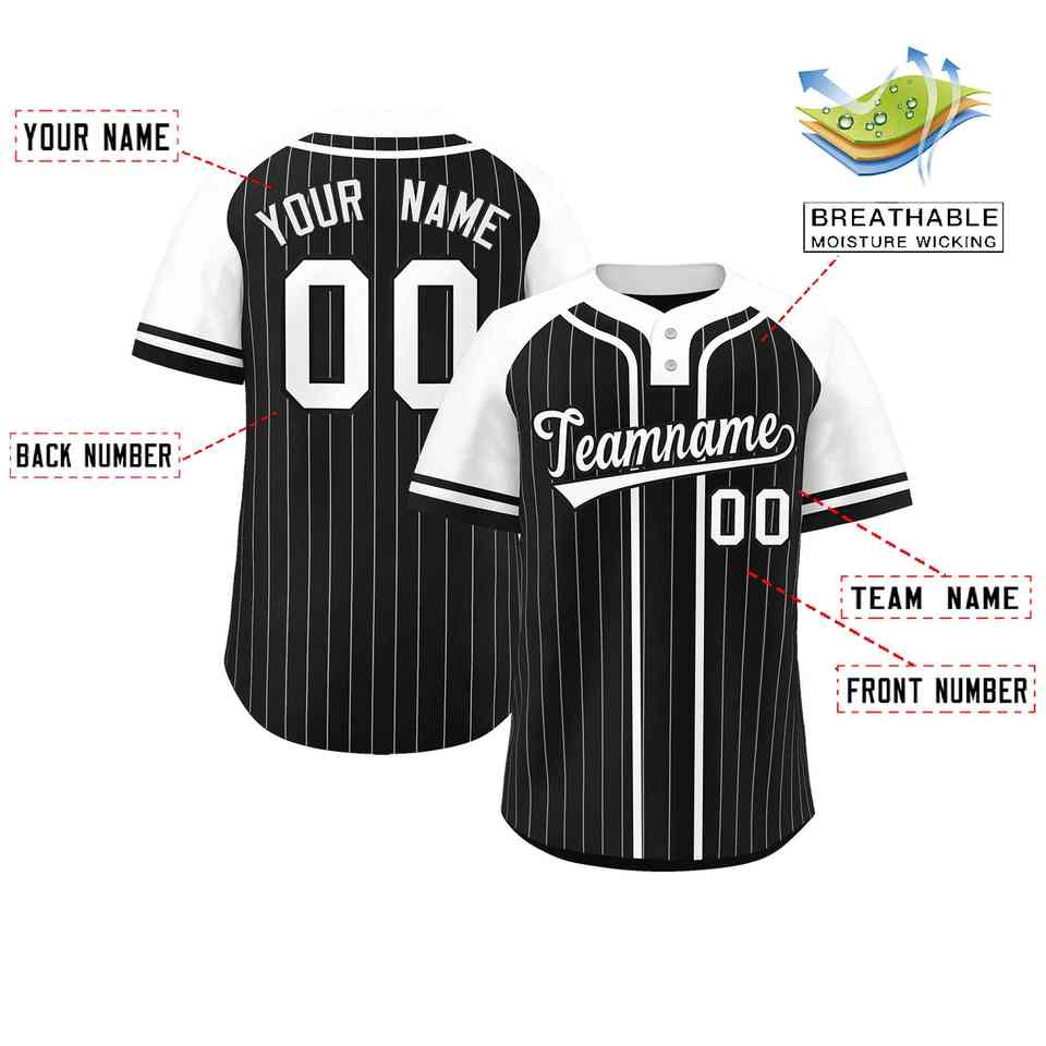 เสื้อซอฟต์บอลแขนแร็กแลนลายทางขาวดำแบบกำหนดเอง กระดุมสองเม็ด ของแท้