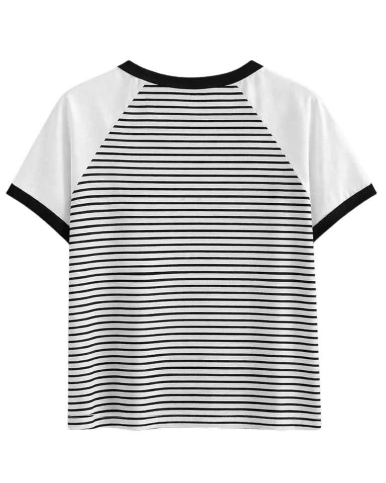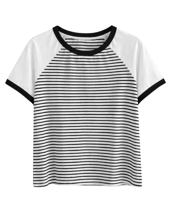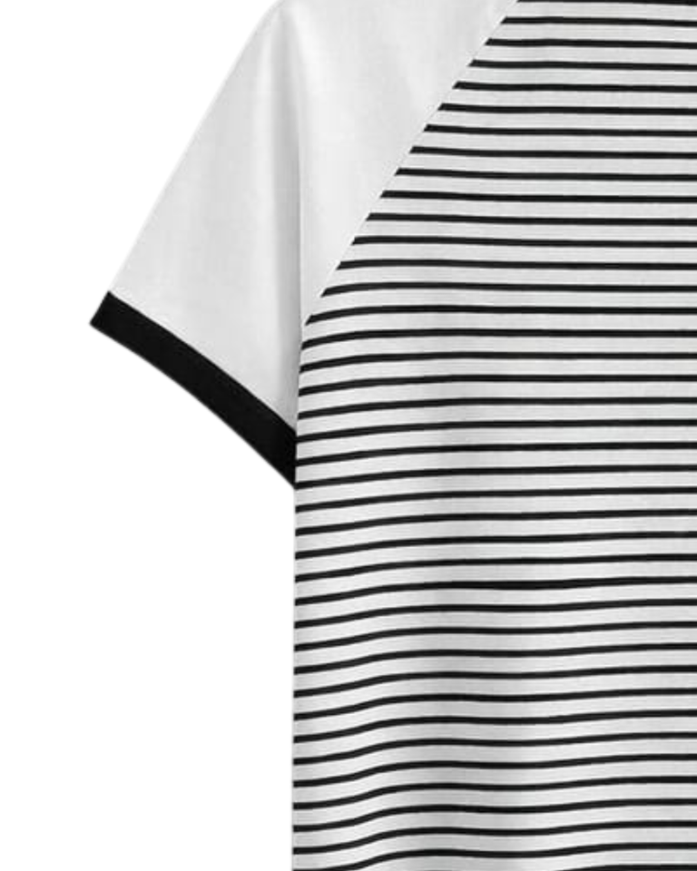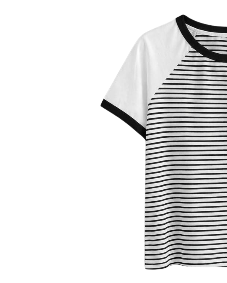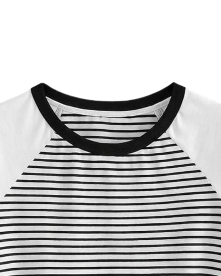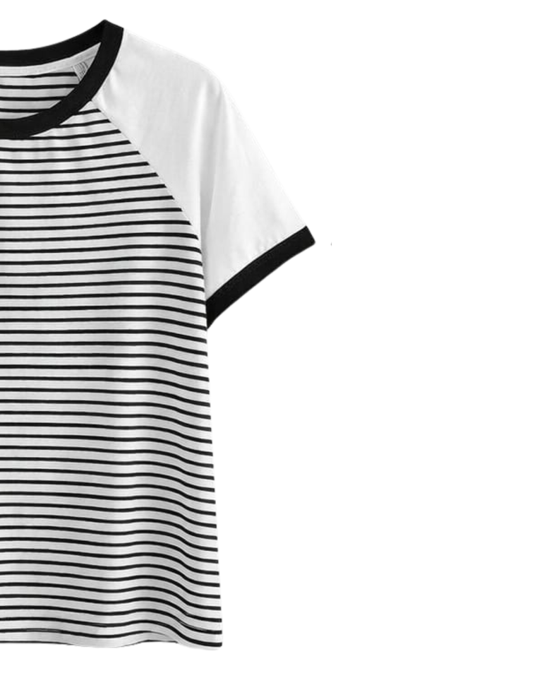 เสื้อยืดแร็กแลนลายทางขาวดำแบบกำหนดเองสำหรับผู้ชาย ผ้าฝ้ายลำลอง เสื้อยืดฤดูร้อน แขนเสื้อตัดกัน คอกลม ผู้ผลิตและจำหน่าย OEM