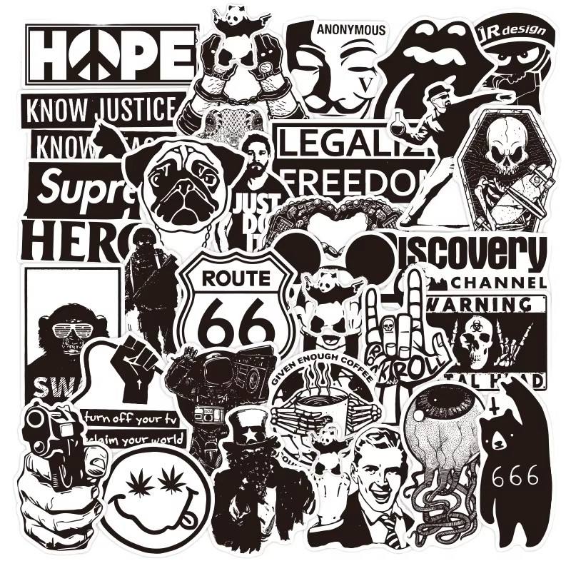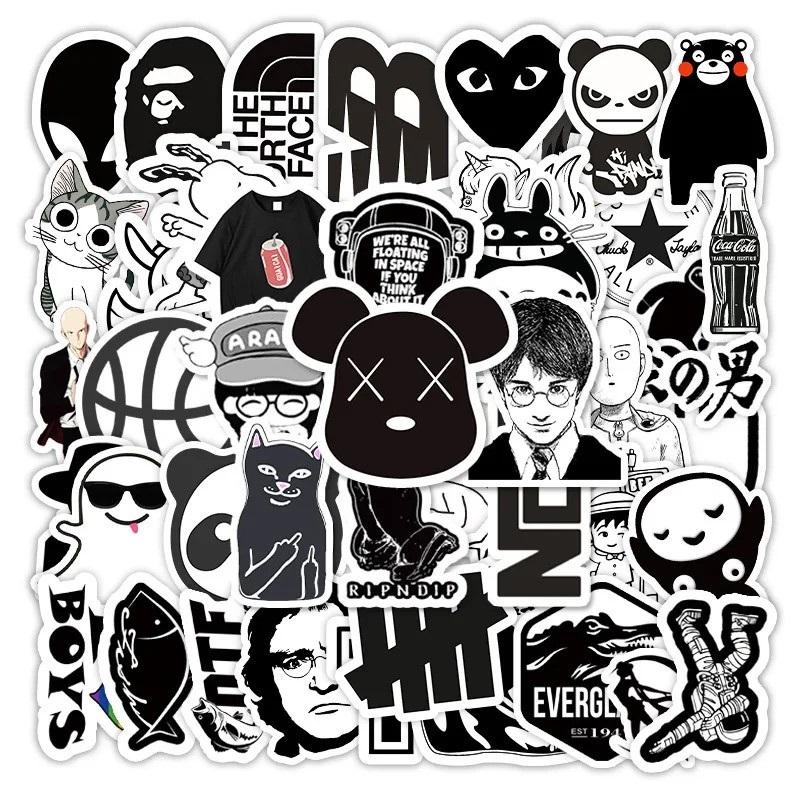 สติกเกอร์ไวนิลสีดำขาวแบบกำหนดเอง | สติ๊กเกอร์พีวีซีกันน้ำแบบตัดไดคัท ทนรังสียูวี พิมพ์ลายแบรนด์ รีไซเคิลได้ ใช้ซ้ำได้