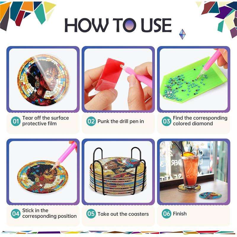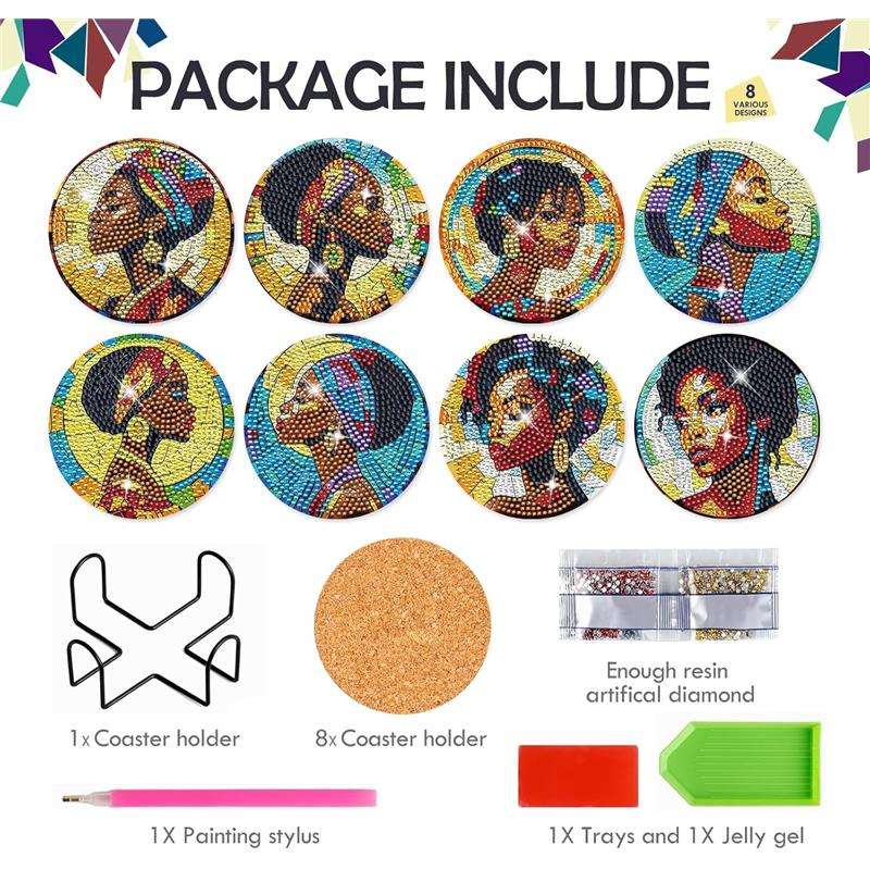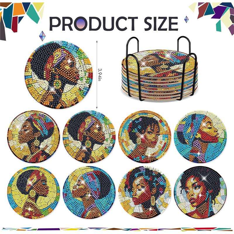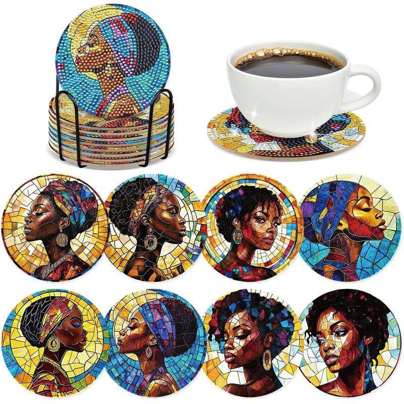 ชุดทำจานรองแก้วเพชร DIY ลายผู้หญิงผิวดำแบบกำหนดเอง งานศิลปะเพชรบนแก้วหลากสี สำหรับเครื่องดื่ม กาแฟ อุปกรณ์งานฝีมือ