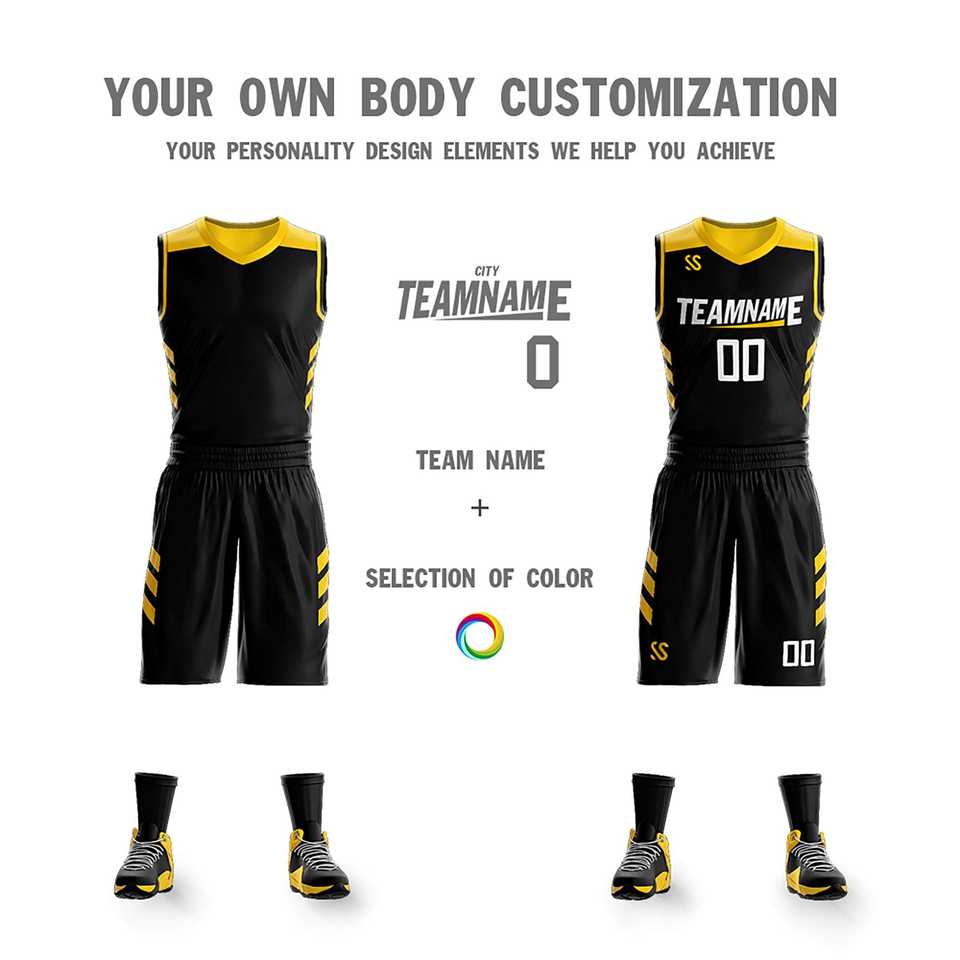 ชุดกีฬาบาสเก็ตบอลแบบกำหนดเอง สีดำเหลือง ดีไซน์สองด้าน