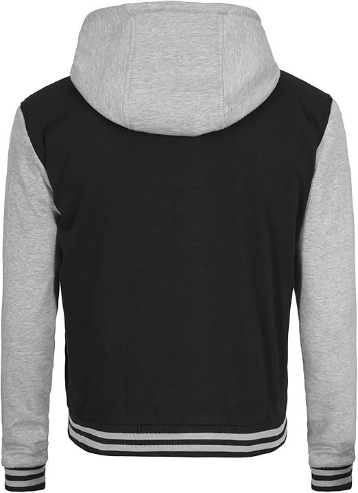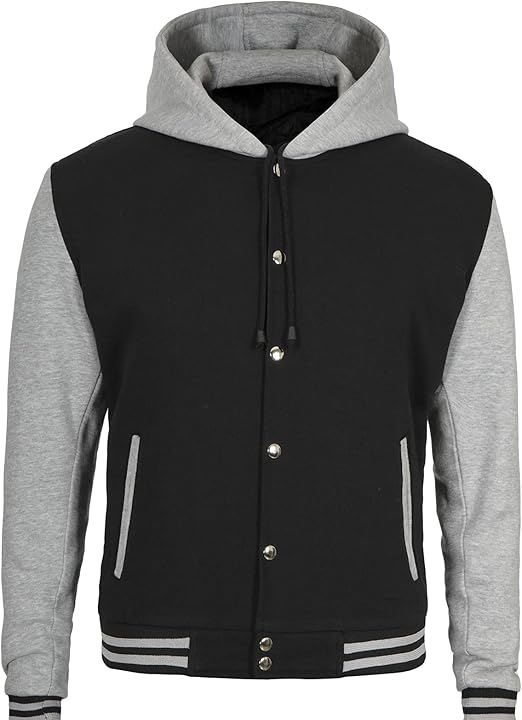 แจ็กเก็ตทีมวิทยาลัยมีฮู้ดสีดำและสีเทากำหนดเองสำหรับผู้ชายและผู้หญิงเครื่องแต่งกายแนวสตรีทแบบพรีเมียมแฟชั่นใช้ได้ทั้งชายและหญิงขายส่ง