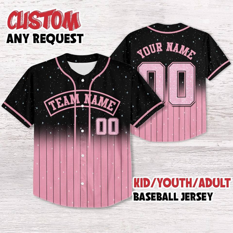เสื้อเบสบอลสีดำและสีชมพูแบบกำหนดเอง, เสื้อเบสบอลแบบกำหนดเองพร้อมชื่อและหมายเลข