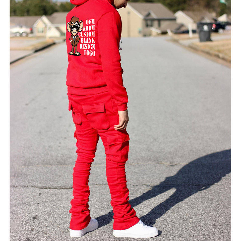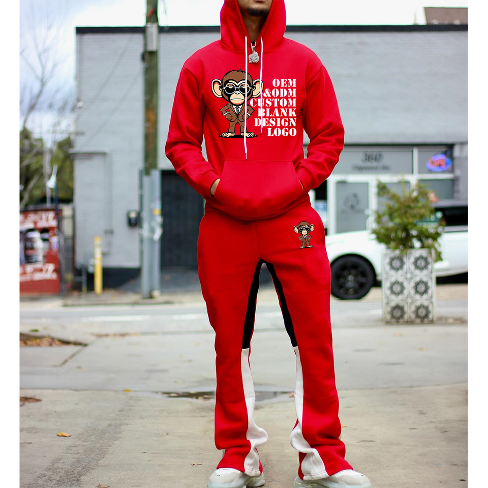 ชุดวอร์มผู้ชายแบบมีฮู้ดผ้าฝ้าย 100% หนานุ่มสำหรับฤดูหนาว ดีไซน์เรียบง่าย พร้อมกางเกงทรงขาบานแบบซ้อน ปักลายโฟม 3 มิติ